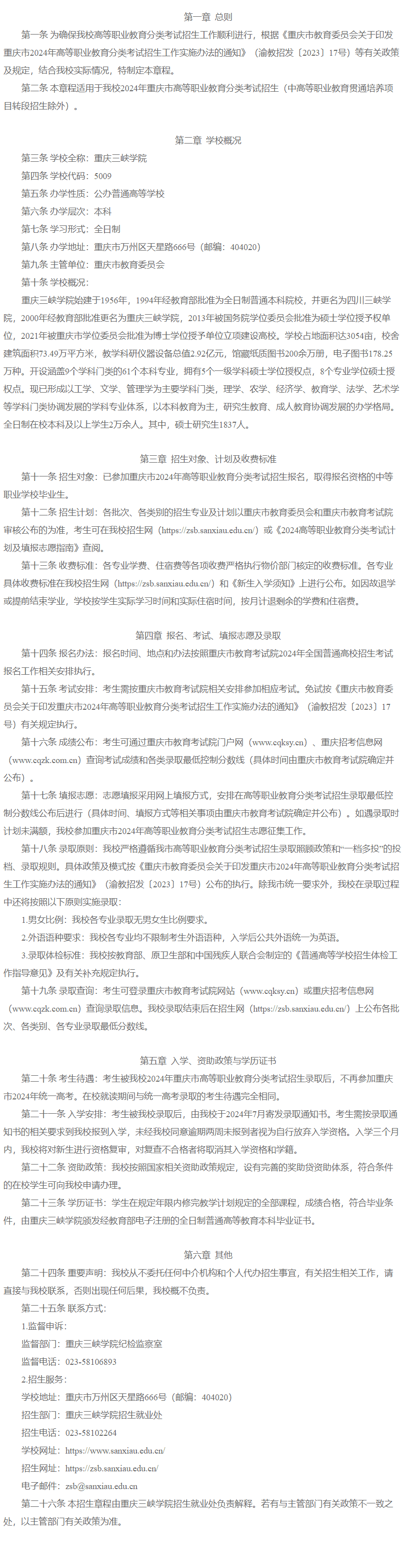 重庆三峡学院2024年重庆市高等职业教育分类考试招生章程